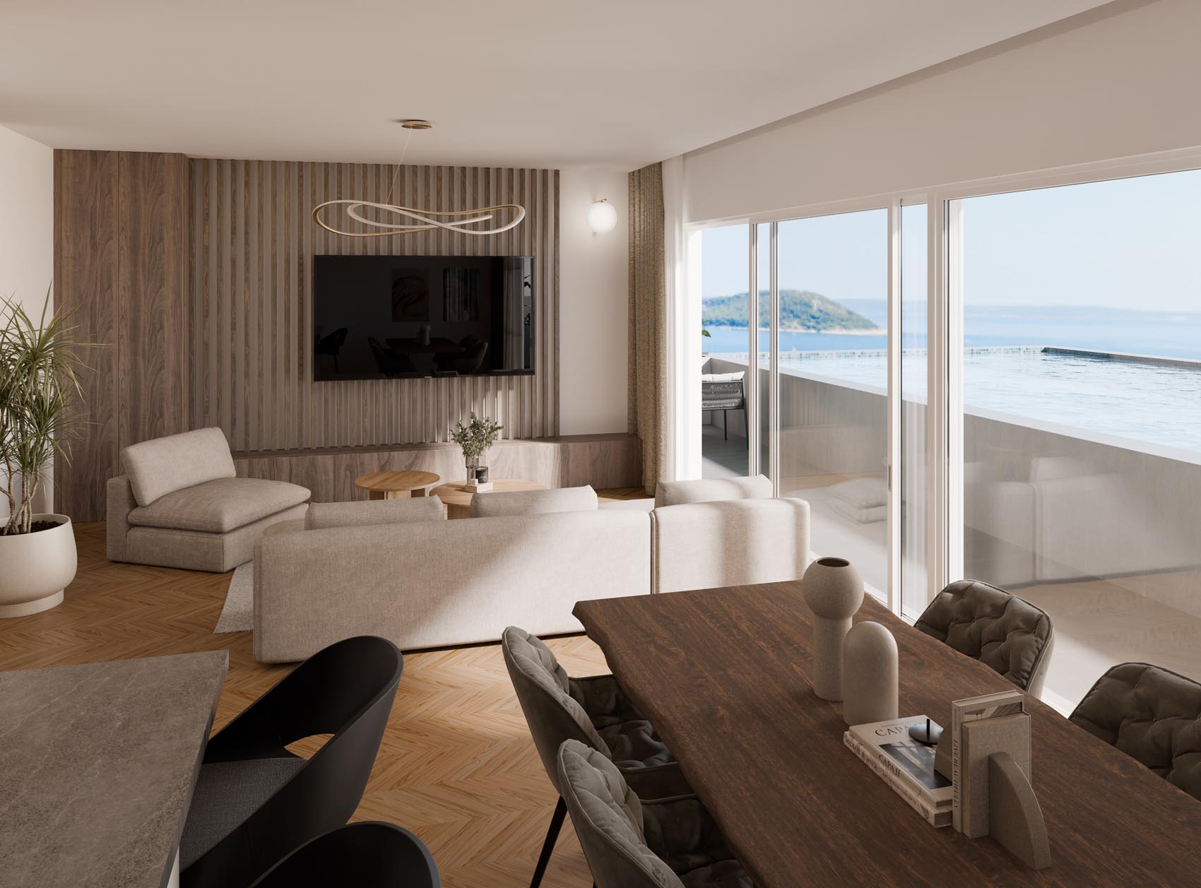 Settled on the 4th floor of new building offering the seafront privacy while also having easy access to the city’s beaches, amenities, and historic centre.This 320 sqm. penthouse offers spacious living room with modern kitchen attached to 3 en-suite bedrooms, large 200 sqm. terrace with a private pool and outdoor kitchen.