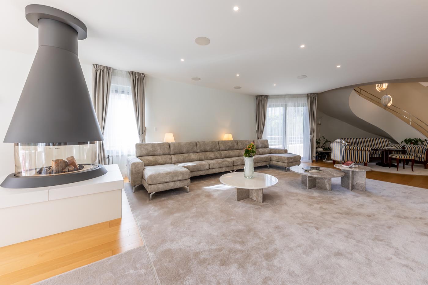 Smart house systems, underfloor heating, and advanced security provide peace of mind. Every element supports a refined but unobtrusive lifestyle.
